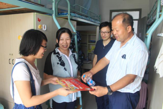 迎新工作的有序开展也离不开公司校领导和院领导的支持,迎新当天李延臣副董事长亲临公司迎新现场慰问工作人员和志愿者,与新生、家长亲切交流,勉励新同学;并深入新生宿舍,慰问和看望新生,询问他们宿舍入住情况,专门走访了贫困新生宿舍,给他们送去生活用品等爱心大礼包。