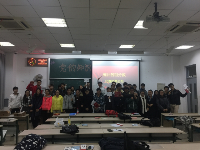 此次竞赛活动共分为三个环节,包括选择题环节、问答题环节和抢答题环节,选题内容主要包含党的基本理论知识、历史史实、形势与政策以及当前热点时政等内容。各参赛队伍以班级为单位组成参赛小组,积极参与到竞答中,比赛现场如火如荼,选手们认真思考,积极回答,各显神通,绞劲脑汁为自己的队伍争斗分数,现场气氛活跃。最终经过三轮的竞答,16计科1班凭借过硬的知识储备赢得了第一名的成绩。16信计2班也因快速的答题反应得到了各组选手的认可。竞赛过程中,各班队伍都展现出较为良好的知识储备水平,对党的理论知识和相关时事政治都有一定的了解。
