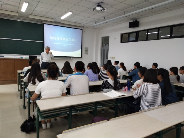 王启维先生以幽默风趣的语言,向同学们讲述了自己的职业生涯。他是生在台湾的湖北人,1979年留学美国。在美国留学期间,因为对计算机专业感兴趣,从食品加工专业转专业读计算机专业的硕士。回国后,在北京加入埃森哲公司,后来一手创办埃森哲中国信息技术中心。他说到:“也许我在这个专业没有实际经验,公司愿意给我机会让我证明自己,所以我成功地转了专业”。提醒同学们求职时注意公司是否愿意给予自己机会证明自己的能力。在求职过程中要积极主动,学会做“第一个举手的人”,表现出自己想要什么。接着,王先生向同学们讲述了六大核心价值观:最佳人才、创造客户价值、全球化公司、恪守诚信、传承卓越、尊重个人。这其中也有值得同学们借鉴的地方,比如最佳人才,我们愿意和优秀的人一起工作,那就让自己成为更优秀的人。他用自己的亲身经历,告诉我们职业生涯中态度决定一切,学会管理自己的老板以及如何推销自己。最后,由HR宋晓陆先生向同学们介绍埃森哲公司CDC实习生项目招聘要求,鼓励同学们积极报名。