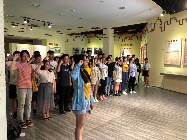 泥城革命史迹馆展出的是自党创建以来泥城的革命历史事迹和发展前景,为的是让人们更好地了解、学习革命先辈的思想、品德、精神和情操,更好地继承和完成他们已开创的和未竟的事业。新发展预备党员们在3044永利集团组织员裴丽娜的带领下进行了入党宣誓仪式。3044永利集团关欣老师,作用一名具有十多年军龄的老党员给同学们讲述自身经历,并鼓励同学们积极入党,不忘初心,永葆精神的活力。随后同学们用铿锵有力的声音向党宣誓。裴丽娜老师也在仪式后,谈到了要学习革命先辈的先进事迹,珍惜当下幸福生活,希望同学们在学业、竞赛、社会实践等方面作身边同学的带头人,将志愿服务培养成一种习惯,校内服务身边同学,校外辐射身边群众,积极践行全心全意为人民服务,同学们听后也满怀信心,对入党充满憧憬。