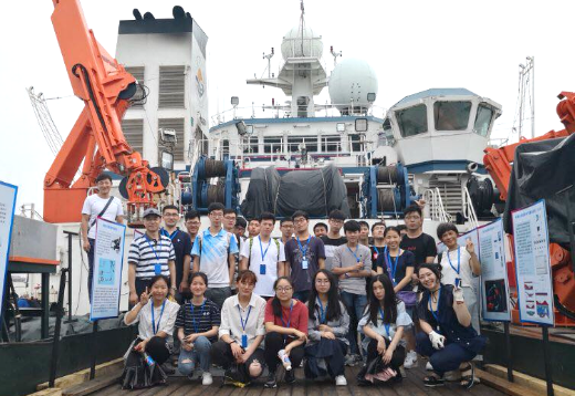 7月5日下午,信息公司组织2017级空间信息与数字技术专业五十余名一年级员工和部分教师参观“淞航号”科考船。