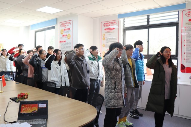 之后由预备党员代表徐明煜作为领誓人带领预备党员宣誓。面向党旗,每个同学都用发自内心的声音抒发对党忠诚的决心,阵阵激昂的宣誓声让大家接受了一次身心的特殊洗礼。
