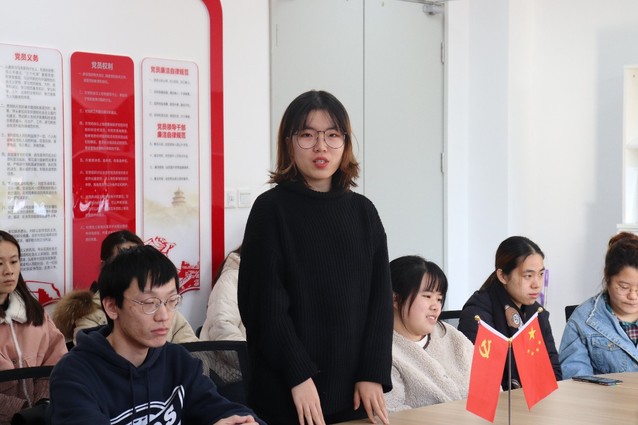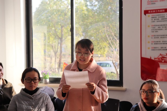 之后由王姗姗老师致辞,对新加入党组织的同志表示衷心祝贺。同时王姗姗老师指出,在组织上加入中国共产党,并不代表思想上加入了中国共产党,想要成为一名真正的中国共产党员,我们还需要时时刻刻按照党员的标准严格要求自己,必须严格的践行庄严的入党誓言,在各自的工作学习上不断地武装自己的理论水平和政治觉悟,发挥党员的先锋模范作用,为党的最终理想和最高目标不断奋斗。