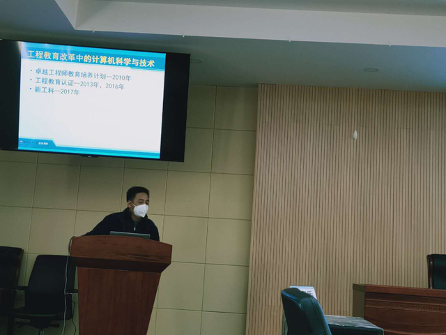 计算机科学与技术专业负责人冯国富就专业认证相关问题向与会领导和老师进行了汇报。