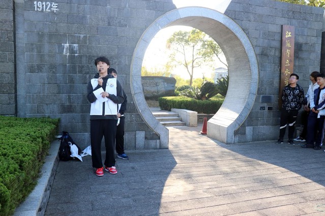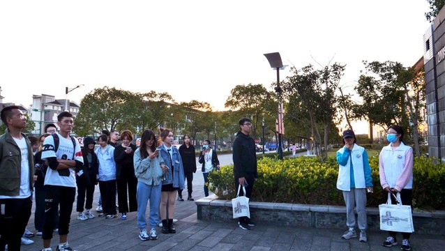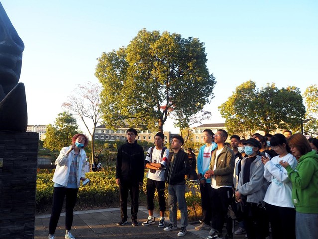 随后,新生们在志愿者们的带领下依次参观了朝海路历史文化长廊上的七道景观门和元鼎骨、绞钢机、六分仪等雕塑。志愿者们用饱满的热情、通俗易懂的语言、亲切的微笑以及对母校的充分尊敬与了解吸引了同学们的注意力。在提问环节,同学们还赢得了精美的小礼品。一路上洒满了同学们的欢声笑语。