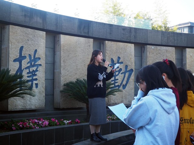 刚进入校园的萌新们认真严肃的站立于“勤朴忠实”四字校训墙前,聆听着课程导师徐淑坦老师以及魏云超老师的讲解与感悟。校训精神与社会主义核心价值观中的“爱国、敬业、诚信、友善”在内涵上一脉相承,魏老师和徐老师以铿锵有力的话语鼓舞着新生们的斗志,劝诫全体新生不骄不馁,鼓励大家在未来四年谱写独属于每个人自己的壮丽华章。