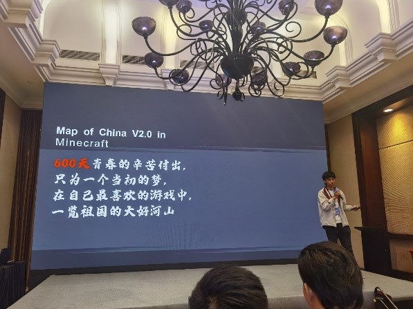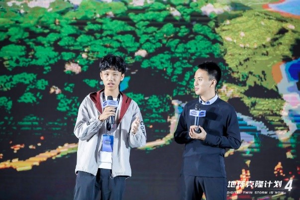在发布会会场,主办方播放了钟家鹏同学在哔哩哔哩网站制作的虚拟场景视频。51world公司的CEO李熠和StarVC联合创始人任泉分别与钟家鹏同学进行了现场互动,钟家鹏同学分享了自己创作思路,他希望将自己爱好与所学知识相结合,用数字孪生技术将祖国的大好河山的仿真实现,并植入最受欢迎的的游戏场景中。
