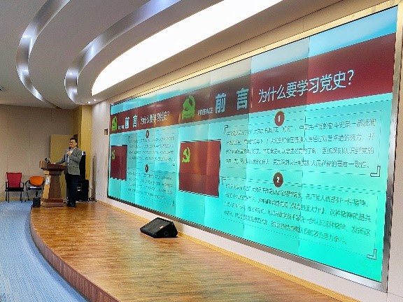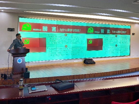讲座伊始,宋自根副主任以“新民主主义革命时期”为主题讲述了中国共产党成立的历史背景,自1921年成立至今,召开的历次全国代表大会记录了党在领导全国各族人民进行革命、建设和改革开放的历程中所谱写的光辉篇章。并在五四青年节到来之际, 寄语在座的全体员工 “青春由磨砺而出彩,人生因奋斗而升华”,成为一名有理想抱负、有家国情怀、有责任担当的时代青年!