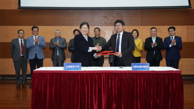 江敏与李鑫代表双方签署《永利集团与上海仪电(集团)有限公司战略合作框架协议》。潘德炉、蒋兴伟、毛丽娟、武伟、潘天佑、石伯明、吴建雄、王宏舟、万荣等领导共同见证签约。之后,与会领导共同为AI+海洋创新中心揭牌。