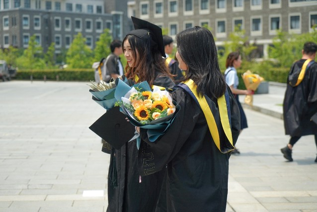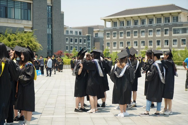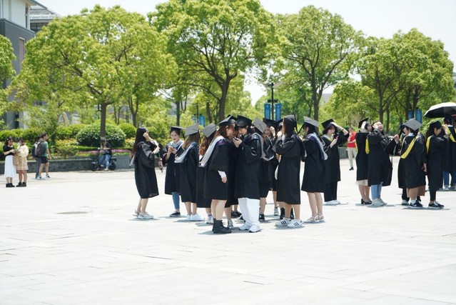 虽然要在这个夏日告别,并宣告员工时代的告一段落,但青春散落,情谊仍在。同学之间相互整理学士帽以及合影留念,好好和过去道别,将过去珍藏为回忆。