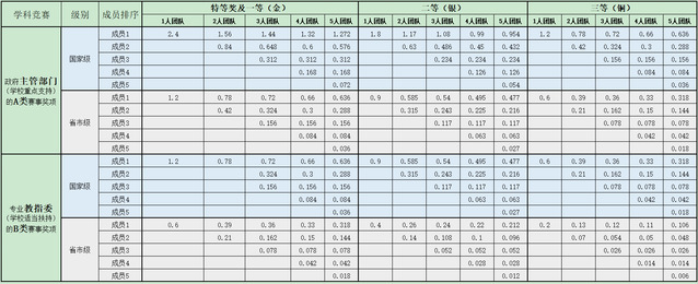 (5)项目加分总绩点恒定的情况下,对团队成员各自分配比例见附表3,各成员具体分值参见附表5。