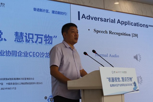 活动上,华东师范大学计算机公司孙仕亮教授就“多模态攻击和防御下的图像识别研究”进行主题演讲,分享目前国内外机器视觉领域最前沿的科研成果。