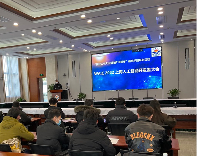 2月26日上午,2022 WAIC 人工智能开发者大会在上海市浦东新区创晶科技中心举办。永利集团海洋科技大楼109会议厅作为大会的分会场,现场同步转播主会场会议,上百名3044永利集团及工程公司师生参加了分会场活动。