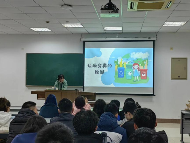 考虑到上海的垃圾分类政策,此次教育特地安排预科班班长陈萱同学以垃圾分类与节约粮食为主题上一次团课。陈萱同学就垃圾对环境的危害、如何对垃圾进行分类、粮食的浪费情况、呼吁大家节约粮食,及时处理生活垃圾并分类投放。