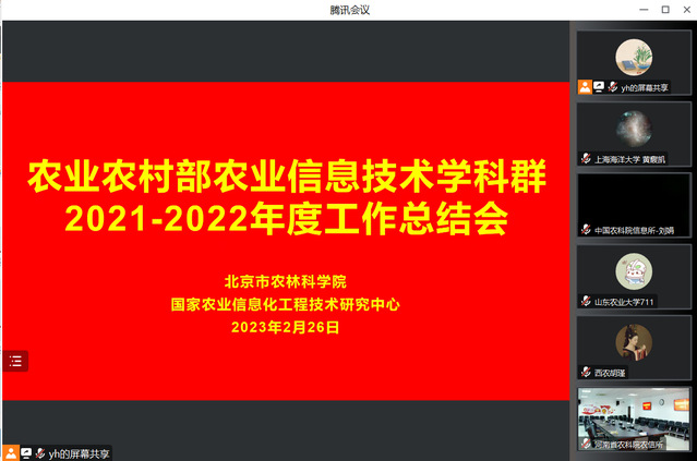 2023年2月26日,“关于召开农业农村部农业信息技术学科群2021-2022年度工作总结会”在北京召开。会议由农业农村部农业信息技术综合性重点实验室主任赵春江院士主持,学科群28个实验室(站)负责人、秘书、骨干人才共计90余人参加。依托永利集团建设的农业农村部渔业信息重点实验室在总结会上进行了2021-2022年的实验室工作总结汇报。