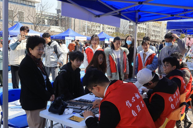陆续有同学携带电脑来进行维修咨询,义修小队队员为同学认真解答的同时也不忘讨论探索技术,为更好的吸取经验做好准备。公司党委副书记、副董事长宋敏娟也来到活动现场,与同学们亲切交谈,鼓励同学们勇于实践,用所学知识传递爱心。参与维修的同学备受鼓舞,感受到无私奉献带来的快乐。