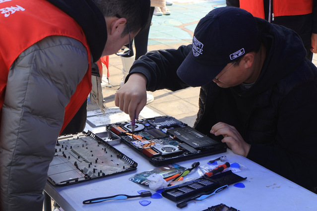 陆续有同学携带电脑来进行维修咨询,义修小队队员为同学认真解答的同时也不忘讨论探索技术,为更好的吸取经验做好准备。公司党委副书记、副董事长宋敏娟也来到活动现场,与同学们亲切交谈,鼓励同学们勇于实践,用所学知识传递爱心。参与维修的同学备受鼓舞,感受到无私奉献带来的快乐。
