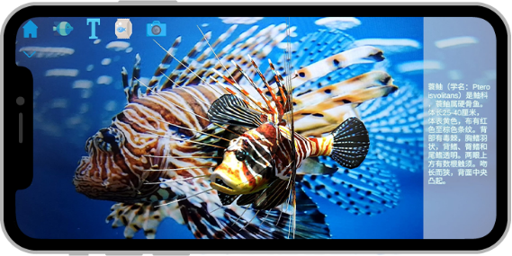 利用3ds Max绘制了较为全面的海洋生物模型,其中包含上百种濒危海洋生物模型,结合AlexNet等深度学习模型实现鱼类智能识别,结合增强现实技术将不同鱼类的平面 2D 图片实时转化为 3D立体模型,使用户在现实场景与虚拟场景的沉浸式交互体验中,能够全方位、多角度地观赏鱼类行为特征。