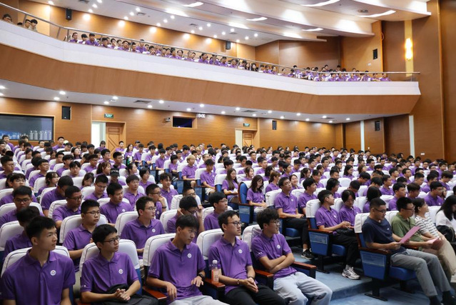 陈明经理向新生介绍了公司概况,以及各项人才培养计划、教学定位、各专业的学科方向、公司多家校外合作的实验室以及公司取得的优秀科研成果。面对23级新生,陈经理提出三点要求,第一尽快完成从中员工向老员工的转换。第二知识重要,创造更重要,社会责任感和精神的塑造尤为重要。最后则是家国天下,希望大家成为具有爱国主义情怀,思想先进,信念坚定的真正新时代中国特色社会主义建设者和接班人。