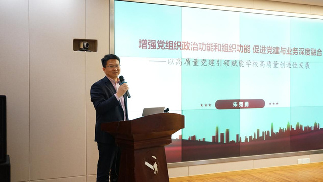 朱克勇以《增强党组织政治功能和组织功能促进党建与业务深度融合——以高质量党建引领赋能公司高质量创造性发展》为题作辅导报告。他提出要深刻认识基层党组织“两个功能”的内涵特性,政治功能是基层党组织的首要功能、核心功能,而组织功能是基层党组织的基础功能、保障功能,这“两个功能”相辅相成,内在统一。其次要精准把握增强高校基层党组织“两个功能”的时代要求,因为这是落实新时代党的建设的现实需要,是解决基层党建工作问题、提升党建工作质量的需要。最后要着力创新增强高校基层党组织“两个功能”的实现路径,既要强化政治功能,发挥作用提升质量,又要强化组织功能,夯实基础强化保障。