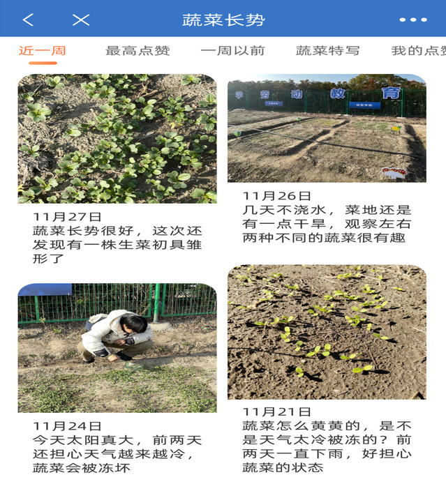 “责任田”承包给同学们后得到了悉心照料,农场里绿油油的蔬菜无不展示着劳动实践的辛勤成果。