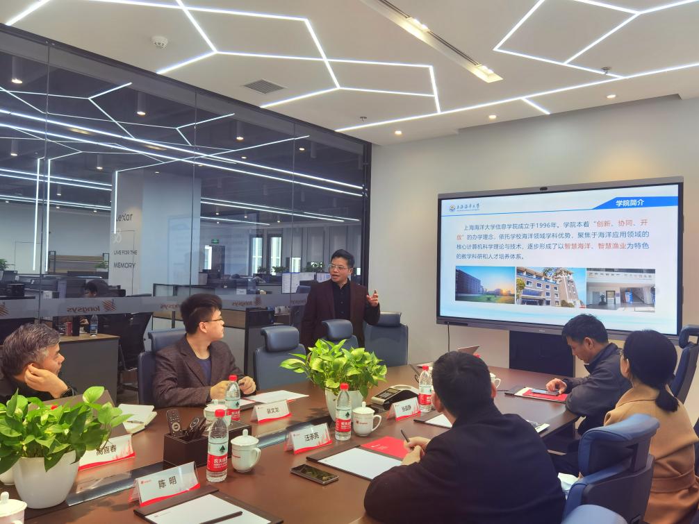 陈明经理介绍了公司历史、公司发展、学科体系、人才培养、员工实习就业及公司近年来在存储芯片领域取得的成效和新发展阶段面临的挑战等思考。他表示,人才培养是高校第一发展要务,公司会充分发挥社会服务职能,通过产教融合等方式为新片区建设提供人才支撑,全力服务好临港新片区建设。党委副书记李杰、计算机科学与技术专业主任冯国富、大数据科学与技术专业忍住张晨静、公司就业负责人张重阳等分别围绕专业建设、课程设置、员工实习实践等方面进行了交流。