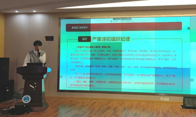 随后,组织委员李莹莹同志讲述了弄虚作假和敛财工具的负面案例;纪检委员周鹏鹏讲述了违规补贴和违规晋升的负面案例,再次明确“小节不慎,大节难保”的重要性。