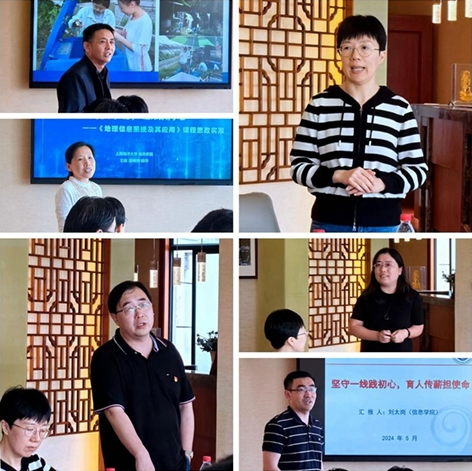 宋巍老师以“立足智慧海洋,砥砺智能时代科研育人之路”为题,讲述了依托国家战略和行业需求驱动,在科研育人实践中,以价值为先、知识为基、能力为重,通过产教育人、竞赛育人、通衢育人,培养研究生服务国家重大战略需求的初心使命感,为国担当的自豪感,运用先进计算机技术解决海洋行业“卡脖子”问题的责任感。作为教师要落实立德树人的任务,需以海为镜,知学海无涯,知教无止境;王振华老师以“洞察天地,致广精微--让星辰大海,伴你梦想起航”为题,讲述了在课程教学中以警示案例和高分精神锤炼员工爱国情怀,增强员工的保密意识,以需求为基,培养为要,协同为纲,思德为魂,持续改进为果的教育创新理念;王建老师以“信息+海洋”视域下的研究生课程思政创新与实践为题,讲述了在课程教学中引导员工养成辩证统一的全球视野,服务国家发展情怀,建立科学的世界观,筑牢务实的人生观;冯国富老师以“价值寻找—从三尺讲台到世界的大洋大海和祖国的江河湖泊”讲述了他援疆的经历和参加联合国南南合作项目的科研过程;卢鹏老师以“共心,共情,共声,做员工的好朋友和知识的提炼者”为题,讲述了他在日常工作中的育人感想:“与员工共心,想员工之所想,做员工的好朋友”“与员工共情,办员工之所盼、做员工知识的提炼者;不但要理解员工需要,更要通过言传身教感染员工,引领员工。”“与员工共声,急员工之所急,让员工随时“找得到”你,让员工快速得到回应。”刘太岗老师以“坚守一线践初心,育人传薪担使命”为题,讲述了以价值塑造为引领,潜心教书育人,以赛促教,培养创新人才的科研实践。