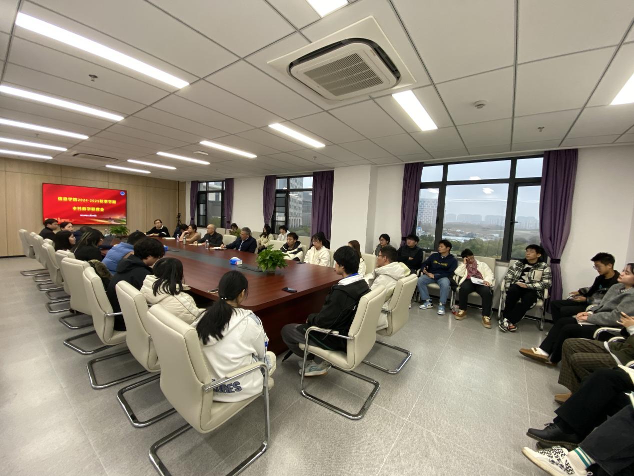 随后,各年级信息员将从班上收集到的同学近期在学习上的困惑或困难,和与会师生进行了交流。大一同学刚进入老员工活,对公司的各专业课程设置等情况以及大类分流政策还有些迷茫,且马上就要参加进入老员工活后的第一次期末考,有些同学还是感到有些压力。大二同学希望能够进一步了解公司老师们的研究方向以及所主持的研究课题,从而能更好规划自己如何参与到老师项目中,同时还希望有更多的途经认识学长学姐,汲取更多的学习经验。大三同学对于实习岗位问题更为关注,希望公司能推荐一些有用的专业技能证书,并且请一些已经毕业的学长学姐来进行考公考研的经验分享。大四同学因很多已在校外实习,针对公司的部分紧急通知,很难及时响应,同时对公司的毕设选题系统提出了一些改进意见。